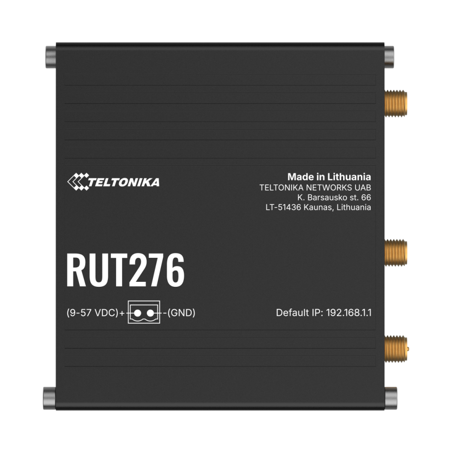 Der RUT276 ist für den zuverlässigen Betrieb in anspruchsvollen Industrieumgebungen ausgelegt und vereint eine kompakte Bauform mit einem robusten Aluminiumgehäuse, das Langlebigkeit, Wärmeableitung und Widerstandsfähigkeit gegen mechanische Belastungen gewährleistet. Sein Design ermöglicht vielfältige Montagemöglichkeiten, darunter DIN-Schienenmontage, Wandmontage und Installation auf ebenen Flächen. Der Router ist für einen stabilen Betrieb unter wechselnden Stromversorgungsbedingungen ausgelegt und unterstützt einen breiten Eingangsspannungsbereich von 9 bis 57 VDC. Zu den integrierten Schutzmechanismen gehören ein Verpolungsschutz und ein Überspannungsschutz über 58 V (10 µs), die das Gerät vor elektrischen Störungen schützen. Zusätzlich zu einem standardmäßigen 2-poligen industriellen DC-Stecker unterstützt der RUT276 sowohl aktives PoE (802.3af Klasse 0) über den LAN-Anschluss als auch passives PoE (16–57 VDC).